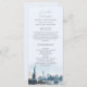 Öka din bröllopsdag med vår elegant New York City Watercolor Skyline Bröllopsprogram. Den här fantastiska designen har en fängslande vattenfärgsillustration av den ikoniska New York City-skylten, inklusive Frihetsgudinnan och hamnen.