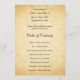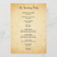 En bröllopsprogram med en tryckt bakgrundsdesign i stil på vintage gammal papper, designad att se ut som en faux parchment mönster. Bakgrunden är en mönster-utskrift i gulbrun beige/tan färg. Det finns svart snyggt som kan vara personlig.