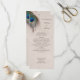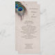 Ett vackert blått, brunt och grönt påfågelfjäder utmärker den övre lämnat av detta formella bröllopsprogram-kort. Din anpassningsbar är i brunt överst på högerna och i mitten. Vi har lämnat mycket utrymme för er egen anpassningsbar och stil. Använda Anpassa den om du vill ändra teckensnitt, storlekt, avstånd, plats osv. Bilder och text placeras på en bakgrund av grått och som försvårar färg i fjädrarna. Baksidan av inbjudan matchar framsidan utan texten, men du kan lägga till en egen text genom att välja Anpassa den. Det här menykortet matchar Peacock Feather Gräns bröllopsinbjudan och andra bröllop-produkter i vår butik.
