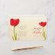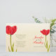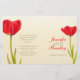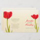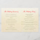 Enkelt, ljusröd tulpanfärgad dubbla på ett bröllopsprogram av rustik krämbakgrund. En del av den stillastående vattenfärgen röd tulpanuppställning bröllop. Ljusröda, grönt- och elfenbensgräddskuggor. Redigera det här bröllopsprogrammet med ditt eget namn, data, ceremonin, bröllopsfestens medarbetare och tack. Ett enkelt program för elegant ersätter bara exempeltexten med bröllop-informationen och delar upp program till hälften vid leverans. Ett enkelt, men modernt ceremoniprogram i vår land stil och romantiskt bröllop. Konstruktion och vattenfärgsmålning av Sarah Trett.