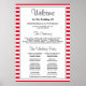 Bröllopsprogrammet Röd/vit Rand-ram Poster