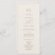 Detta romantiska guld och elfenbensmonogram-bröllopsprogram är perfekt för ett enkelt bröllop. Den moderna klassiska designen har finare-snurrar och vitaktiga blomningar med elegant elegant-handskriven faux champagne guld-typografi. Ta med par initialer, parets namn, bröllop-datum och -plats, tack, serviceordning, bröllopsfest och ett minnesmärke "i kärleksfullt minne" som tillval. Obs! Den här designen har inte äkta guld-folie. Det är en grafik av hög kvalitet som framställs som guld-folie.