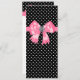 Elegantens rosa båge med rosa av diamantmittpunkt svart polka punkt bröllop, programmall för party & händelse. Den här chic rosa svartpolka prickmallen fungerar underbart för en rosa svart polka punkt födelsedagsfest inbjudan, rosa svartpolka prickinbjudan, rosa svartpolka prickduschinbjudan, rosa svart polka-punktinbjudan och andra speciella tillfällen. Lägg till dina detaljer i fram och tillbaka genom att helt enkelt välja knappen "Anpassa den!" för att börja lägga till din händelseinformation, typsnitt stil, typsnitt storlek & färg och text. Observera att alla inbjudningssymboler som du hittar på Zazzle är tryckta på platta pappra lagrar utan några egentliga juveler, krukor, upphöjda, präglade eller tillagda delar eller delara.