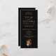 Det här elegant bröllop-programmet har en dramatisk svart bakgrund med en rik vattenfärgad bukett i rost, bränd orange och jorda botaniska toner. Texten är vackert placerad i en klassisk layout, där modern typografi blandas med säsong-charm. På baksidan finns utrymme för information om ceremonier, bröllopsfest och ett speciellt tackmeddelande. Perfekt för ett moody fall-bröllop med en rustik, romantisk känsla. Fullt anpassade för att matcha bröllop färg och formuleringen.