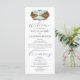 Välkomna gäster till din speciella dag med det här elegant bröllop-programmet som innehåller information om din händelse och bröllopsfest om en ren och lättläst layout. En vackert illustrerad design överst ger en personlig som koordinerar med det tema du valt. Perfekt för firande, som är gammalt, av rustiskt, klassiskt eller modernt slag, hjälper gästerna att följa med och delta i ceremonin. Anpassa enkelt texten för att skapa ett program som är unikt för dig.