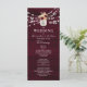Elegant, modernt, rustiskt bröllopsprogram av marsala burgundi med monogram, vackra vattenfärgblommor i Mason burk, strängskript av ljus och kalligrafi av trendig.