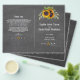 Rustic bröllop-kort med vattenfärgade solblommor, pilar med hjärtan och solblommor som delare, allt på en riktigt svart färgad färgbakgrund. Använda Anpassa verktyg om du vill lägga till din information. Matchande objekt finns i min Rustic Sunblommor Chalkboard-samling.