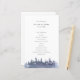 Fyll i er "dag av"-stationär i bröllop med ett vackert ceremonieprogram med en vacker bakgrund av abstrakt vattenfärgen gräs träd i dammig i blått. Anpassa den omvända sidan om du vill visa medlemmarna i bröllopsfesten.