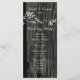 Den här vackra vintagen stil har en enkel mall som gör att du kan fylla i bröllopsfesten på ena sidan och ceremonin på den andra. Vintage silhuetfåglar på träkol-grått-trä med blek grått-text. Klicka på knappen Anpassa om du behöver ändra något. NOTERAR ATT ALLA INSLAG ÄR TRYCKTA EFFEKTER - det finns inget egentligt trä.