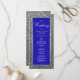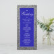 Chic, elegant, glam glitter silver och royal blå bröllopsprogram med moderna kalligrafskript.