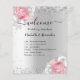 Please note that this program is on flyer paper and very thin. Envelopes are not included. For thicker programs (same design) please visit our store. A faux silver looking background. Decorated with faux silver sparkles and pink and white flowers, roses. If you need more space for text you can remove the flowers in the right corner.