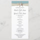 Starfish och det roliga utseendet på bröllopsprogram som tryckts med burlap-kort accentueras i himmel blue för att ge en komplimang till havsvågen bröllop.