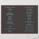 Svart canvas och rödplatinerad bröllopsprogram på zazzle.co.uk/datesdujour. Bröllopsprogrammets flygblad är designat att vikas ihop på halva sidor och skapar 4 sidor med Bröllop Ceremony och Bröllopsfest på insidan på sidorna 2 och 3.
