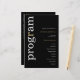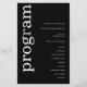 BRÖLLOPSPROGRAMMET BUDGET Snyggt White Guld Text Black. En budgetpris storlek på 5,5 x 8,5 tum på en elegant på 110 lb LINEN lagrar - för en lyxkänsla till underbart värde är detta perfekt för menyer, inbjudningar och program osv. Detta storleka budgetalternativ finns också tillgängligt i andra pappra val. SEMI-GLOSS 110 lb-kortet lagrar har ungefär samma tjocklek som ett vykort, så fungerar också bra för inbjudningar. FELT 100 lbs papper är en färgad, INTE vit, vilket ger en kraftig tryckning. MATTE 80 lbs pappra lagrar är ljust vitt, för skarp utskrift, underbart för dina menyer och program, medan SATIN 80 lbs papper är tunt och lätt En modern typografisk design med programmet i stor typografi i vitt med "r" i guld, roterad och till lämnat sida på svart bakgrund.
