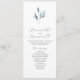 Den här mallen för bröllopsprogram av telängd har unika vattenfärgsfärger i dammblått löv. Använda mallen fält för att lägga till din serviceordning. Kortet återgår till ett fast matchande färg. Om du vill se fler bröllop-teman som den här besöker du www.zazzle.com/dotellabelle Unik konst och design av Victoria Grigaliunas från Do Berätta A Belle.