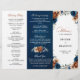 Elegant Navy Blue, Terracotta , Orange earthy blommigt Tema bröllop tri fold programme med elegant bouquet of Navy Blue, Terracotta färg ro peonies and grönt eucalyptus lövs. Kontakta mig om du behöver hjälp med anpassning eller om du behöver någon annan produkt med den här designen.