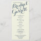 Bröllopsprogram med textutskrivet rackkort för elfenbenstext med vit text eller ändra färg på text som föredras.