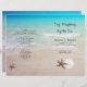 Tropiskt bröllop på stranden har ett hopkokat ceremoniprogram. Turquise Sea vatten och slät strandsand är bakgrunden till detta program för anpassningsbar som kommer att halveras. Det är enkelt att anpassa Avslappnaden i mörk grått på fyra "sidor". Sand dollar och stjärnfisk dekorat som representerar paret.