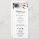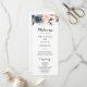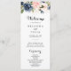 Det unika bröllopsprogrammet för blommigt under vintern i eleganten är perfekt för ett modernt bröllop. Utformningen har vackra, handmålade mörk blått, blå, marinerade, rosa, blommor, blommor från guld och blad av grönt, buntade i elegant bouquets.