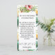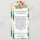 Detta välkomstkort för besökare som bröllopsprogram för dubblor. Båda sidor av kortet har ett blommönster för grönt. På kortets framsida finns parets välkomstande hälsning för gäster, medan baksidan har en enkel bild-tidslinje i bröllop.