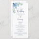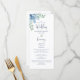 Bröllopsprogrammet Vattenfärgsblå blommor och grön Meny