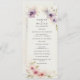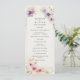 Med det här bröllopsprogrammet kan du fånga kärnan av ditt fantastiska firande, som är försedd med en delikat ram av pastellblå och rosa vattenfärgskosmos blommor. Framsidan exuderar romantik och charm, medan baksidan har en serensliver med blå kosmos blommigt.