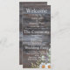 Bröllopsprogrammet Vita Daisyn är perfektens blandning av elegans och stil. Det rustiska träet fungerar som en vacker bakgrund och accentuerar de vackra vita daisyn.