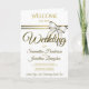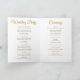 Gör det enkelt för dina gäster att följa ceremonin med dessa vackra bröllopsprogram. Texten från guld är vit och guld rosett band och bågar. Insidan har en panel för bröllopsfesten och en annan för ceremonin. På baksidan finns det utrymme för att skriva en speciell anteckning som minnesmärke för nära och kära som har passerat, eller tacka familj och speciella vänner.