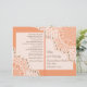 Elegant vit snöre med ceremonin för pärlkorallkornen orange bröllop och party-vikta program med vita snöre med pärlor för beige/ecru på korallets orange som täcker två hörn av en vit rektangel med korallinjen orange gräns. Text i brunt. Observera att snöre är "tryckt på" och inte äkta tyg. Elegantens sofistikerade och romantiska utformning är en del av ett bröllop-set och är perfekt för en chic vår, sommar eller fall/höst bröllop. Du måste vika i mitten för att få ett hopfogat program. Välj bara den pappra värdetypen när den viks väl.