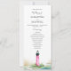 Dessa bröllopsceremoniprogram för strand har en rosa vattenfärgsfyr. Använda mallen fält för att lägga till din serviceordning. Kortet återgår till utrymme för att lägga till information om bröllopsfesten. Beställ telängder, tryckta kort eller utskrivbara bröllopsprogram. Ett charmerande val för markuttag och destinationsbröllop. Om du vill se mer unika utformningar som den här kan du besöka Do Berätta för en Belle på Zazzle på www.zazzle.com/dotellabelle Unik vattenfärgsbild och design av Victoria Grigaliunas.
