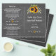Rustic bröllop-kort med vattenfärgade solblommor, pilar med hjärtan och solblommor som delare, allt på en riktigt svart färgad färgbakgrund. Använda Anpassa verktyg om du vill lägga till din information. Matchande objekt finns i min Rustic Sunblommor Chalkboard-samling.