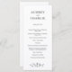 Ett traditionellt bröllopsprogram i svartvitt med en skiss av vilda blommor.