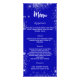 Bröllopsmottagningsprogram och -meny. Anpassa och lägg till ditt namn, ditt program och menyn. Royalets blå bakgrund, vit text. Dekorerad med faux silver glitter, gnistor. Tillbaka: Lägg till firande-menyn.