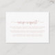 Detta bröllopsrecept för Rosa Guld kalligrafi tillbehörskort är perfekt för en enkel bröllopsfest. Designen har en vacker kalligrafi rosa guld font på en vit bakgrund för att försköna ditt evenemang.