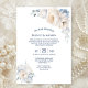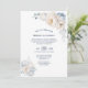 Inbjudan dina vänner och nära vänner med denna elegant, dammig, blått och vitt blommigt bröllopsinbjudan som har varit designad för kostym par, som har valt att utbyta vokor i en privat ceremoni och fira glädjen i sitt senaste giftermål vid en mottagningsplats som de själva har valt med sina vänner och nära.