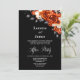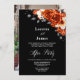 Bjud in dina vänner och nära och kära till din bröllopsfest efter kalaset med denna eleganta svarta efterbröllopsinbjudan i bränd orange med blommotiv som har en bild av det lyckliga paret på baksidan för att fira ditt senaste äktenskap. Denna inbjudan är perfekt för par som har valt att gifta sig i en privat ceremoni och önskar dela sin glädje med vänner och nära och kära.