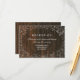 Ett rustikt och elegant bröllopskort med en kant av gips över en bakgrund inspirerad av ladvirke.