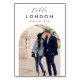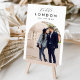 Lägg till en speciell finish på dina bröllopsbord med dessa anpassade fototabellnummerkort. Namnge varje bord efter en minnesvärd resedestination och lägg till ett foto och destinationens namn på dessa unika kortställ. Ditt foto är placerat längst ner i en välvd layout, med platsens namn och dina initialer och bröllopsdatum centrerade högst upp.