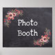 Bröllopsskylt Fotoautomat Kritbord Utseende med rosa blomkant.