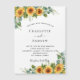 En vit bakgrund dekorerad med solrosor, eukalyptusgrönska. Anpassa och lägg till dina namn och festdetaljer.
