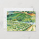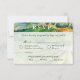 Bröllopssvarskort med en akvarellmålning av böljande kullar med druvrankor på ett vinhus. Anpassa detta bröllopssvarskort med alla dina egna personliga detaljer till en vinbröllopsinbjudan. Detaljer inkluderar gäster på fest med måltidsalternativ.
