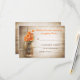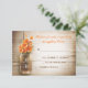 vacker rustik bröllops-RSVP - bröllopssvarskort med slitstark träbakgrund och mursvart kruk med orangefärgade blommor . Jag föreslår ett vackert linnepapper med textur för denna design.