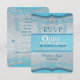 En mycket romantisk saga med riktiga genomskinliga pärlsidor inklädda i diamanter och spetsar mot en akvablå bakgrund, med silhuetter av sjöhästar.
