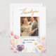 Visa din tacksamhet med stil med detta eleganta blomstergula bröllopskort tack. Med en vacker design av ömtåliga akvarellblommor och skimrande falska guld folieaccent, ger detta kort en touch av sofistikering till din efterbröllopskorrespondens. Den tidlösa och romantiska designen är perfekt för alla par. Anpassa enkelt texten för att lägga till dina namn och ett personligt meddelande, skapa en unik och hjärtlig tacknota till dina gäster.