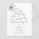 Bröllopste-dags fest inbjudan med en tekanna som häller ut blommor som omger vacker, elegant kalligrafi. En sådan söt design för din tefest! Se koordinerande artiklar i vår butik, Enchanted Finch.