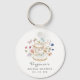 Låt din speciella dag blomstra med denna bröllopste-nyckelring! Denna design har fantastiska handmålade akvarellblommor i nyanser av djup lila, dammig blå och rosafärgad rosa med salvia grönska. Oavsett om du är värd för en trädgårdsfest eller en mysig, intim sammankomst, kommer denna vackra design att ge en speciell touch av charm till din händelse. Hitta samordnade produkter i Watercolor Wildflower Tea Party Bröllopsdusch.