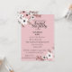 Denna bild visar en inbjudan till bröllopste med rosa bakgrund och blomsterdesign. Inbjudan är till en bröllopste för att hedra Annabella Ford. Evenemanget är planerat till den 10:e juli klockan två på eftermiddagen på The Pavillion Restaurant, beläget på 2385 Asteron Street, Jackson, MI.