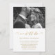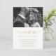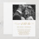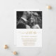 Elegant ändra datum för bröllopsuppskjutande kungörelse. Detta enkla meddelande är ett chic sätt att låta inbjudna gäster veta att datumet för ert bröllop har ändrats på grund av oförutsedda omständigheter, och innehåller det nya bröllopsdatumet. Detta trendiga meddelande har en vacker "vi gör fortfarande" falsk guld kalligrafi skrift på en vit bakgrund med parets foto.