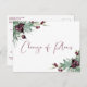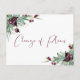 Om omständigheterna kräver att du skjuter upp din bröllopsdag denna julhelg, kan du informera dina gäster med detta vackra och moderna bröllopsförsenade vykort med vattenfärg av säsongens gröna julgran med plommonlila bär och "Ändrade planer" skrivet i en koordinerande stilfull lila skrift på framsidan. På baksidan kan du anpassa ditt uppskjutande meddelande i detalj.