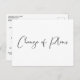 Varna dina gäster att omständigheterna kräver att ni skjuter upp er bröllopsdag med detta enkla svart-vita bröllopsändringskort. "Ändrade Planer" skrivs i modern skrift på framsidan. På baksidan kan du anpassa ditt meddelande mer i detalj.